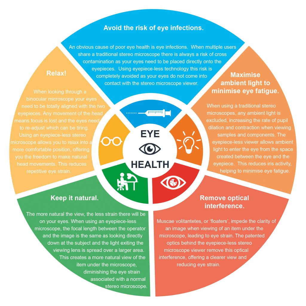 Five ways that our eyepiece-less technology can help stereo microscope users maintain good eye health…
