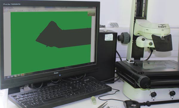 Primarily used for non-contact measurement, the Swift video system is utilised for measuring a catalogue of components including the stylus tip. As so many of the components are small precision parts, it is not as simple as picking up a caliper and achieving an accurate measurement, the parts are too small, too fine, or the angles make it hard to measure.